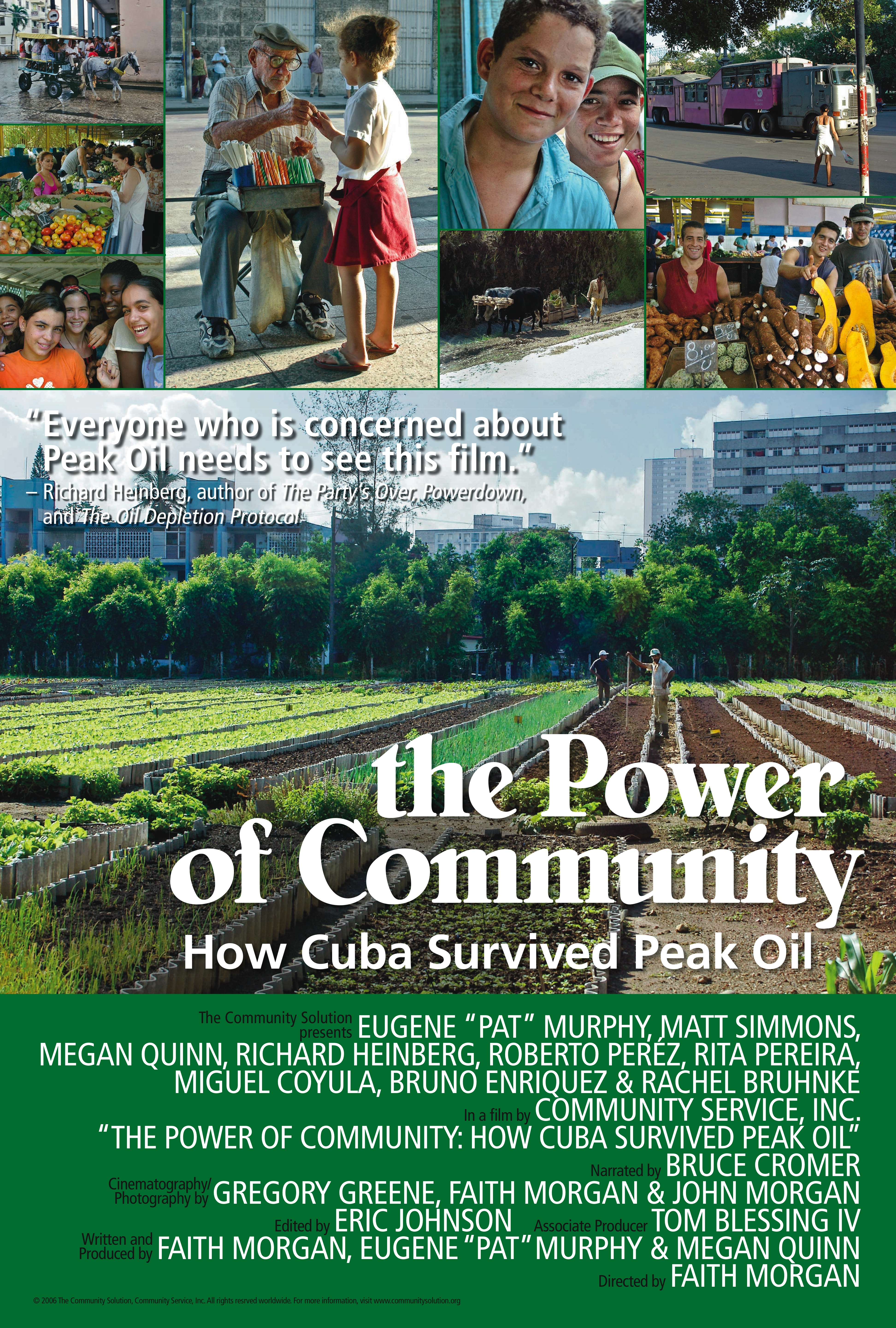 The Power of Community: How Cuba Survived Peak Oil is a project of the Arthur Morgan Institute for Community Solutions. This fascinating and empowering film shows how communities pulled together, created solutions, and ultimately thrived in spite of their decreased access to imported energy.