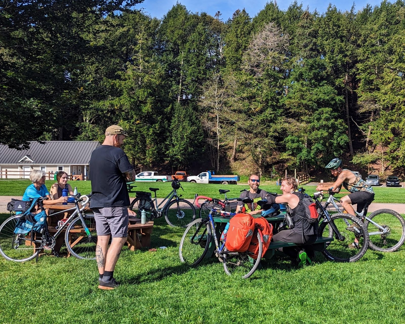 We abide by traffic rules and hand signals as detailed in the Nova Scotia Bicycle Safety handbook, available online at https://novascotia.ca/tran/publications/novascotiabicyclesafety.pdf. We’ll aim to travel in small groups, with a lead and sweep for each group.